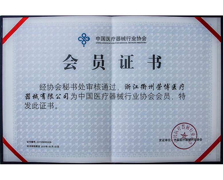 中國醫(yī)療器械行業(yè)協(xié)會會員證書